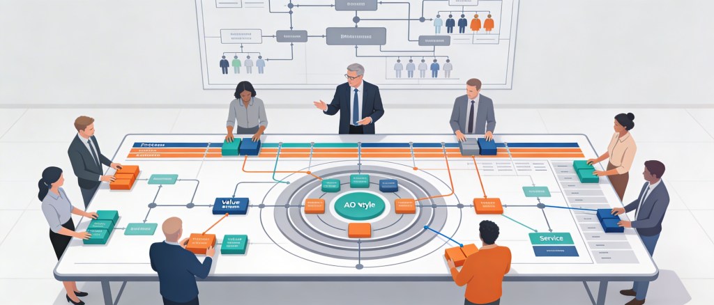 - Purpose: Align business processes (BPM), technology, and people with an AO‑based “responsive organization” design.